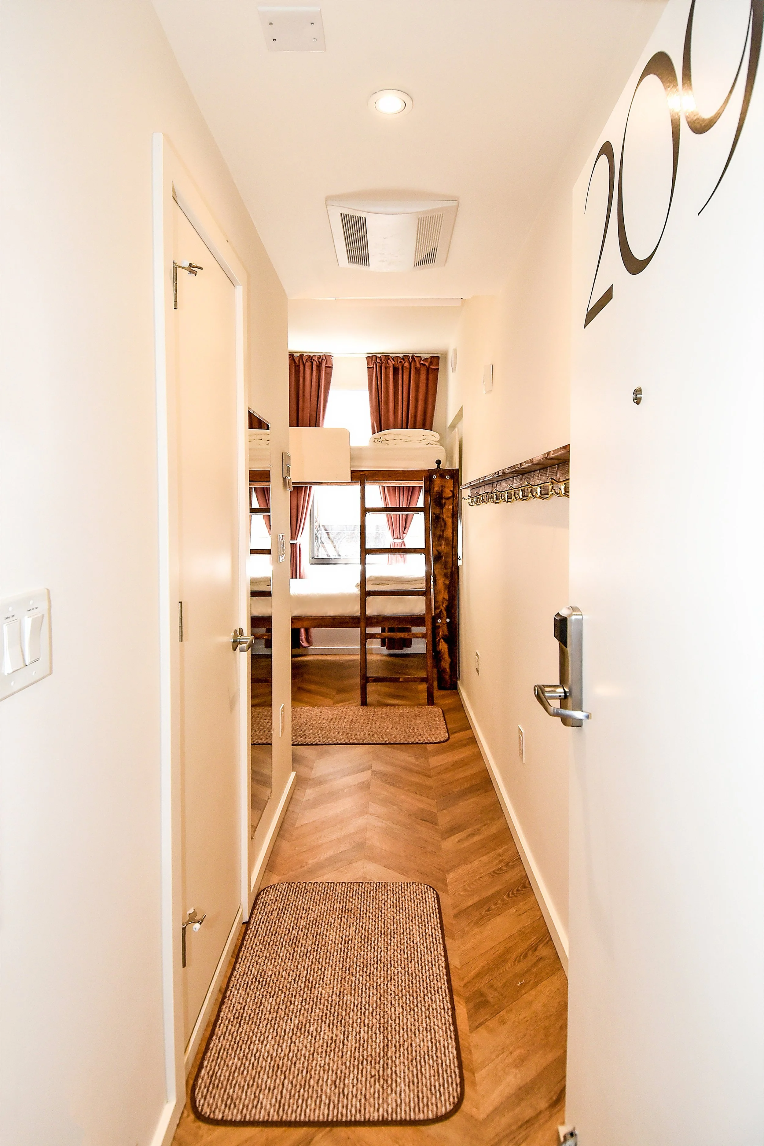 Looking to stay a bit differently? Book one of our communal dorm rooms for hostel-inspired stay. Dorm rooms consist of triple-style bunk beds equipped with privacy curtains, personal storage, and your own full sized locker.